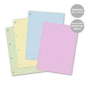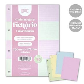 Refil fichário universitário 200x275mm 48fl enjoy 4cores dac o refil de folhas para caderno argolado universitário é perfeito para reposição e dar continuidade nos estudos. Possui 48 folhas pautadas em linhas brancas e é ideal para o dia a dia na escola ou na faculdade. Agora você tem folhas decoradas para incrementar ainda mais seu fichário, são folhas cheia de chame características: - marca: dac; - 4 furos; - 4 cores azul, amarelo, verde e rosa ; - folhas pautadas com linhas brancas que facilitam a escrita; - 48 folhas personalizadas; - papel off-set 90g/m; - tamanho universitário: 200 x 275mm; - referência: 4165re. -imagens meramente ilustrativas- atenção: a cor do produto pode variar de acordo com o monitor atenção: o fabricante pode alterar a cor de alguma parte do produto sem aviso prévio. Ean: 7908689901300