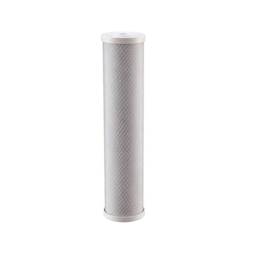 Elemento Filtrante Carbon Block para carcaças BIG 20". Refil de carvão ativado compactado, de alta vazão. Elimina gostos e odores indesejáveis, Alta capacidade de redução de cloro, Permite altas vazões. Diâmetro externo: 4,5" (BIG) Altura: 20" Vazão recomendada: 1500 litros/hora Grau de filtração: 5 micra Dimensões do produto (comp x larg x alt): 115,7 x 115,7 x 508,0 mm Composição Elemento Filtrante: Carvão Ativado Compacto - Origem Vegetal Composição Acabamentos: tampas, TNT e tela em Polipropileno (PP) / arruelas de Vedação em Elastômero Atóxico Temperatura de Operação: Máx. 70 C / Mín. 1 C Pressão de Operação: Máx. 62 mca (6,2 bar) / Mín. 3 mca (0,3 bar)
