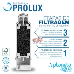 Refil para purificadores Electrolux, elimina odores, sabores desagradáveis e reduz o cloro. Possui 3 etapas de filtragem e ação bacteriostática.Tipo