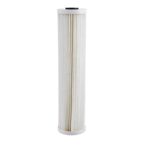Elemento Plissado de Poliéster Lavável PLBIG20/25 - Compatível ao Pentek R30-20BB, Hoken BIG Filter, Hidrofiltros Polyflex. Elemento pode ser lavado até 3x para aumento da sua vida útil. Indicado para Pontos de Entrada. Eficiente na retenção de partículas sólidas. Indicado para pousadas, hotéis, cervejarias, entre outras opções que necessitem de grandes vazões. Pressão de Operação: 0,3 a 4,0 kgf/cm² 3 a 40 mca Temperatura de Operação: 1 a 40 grausDimensionais: 510x113x113 mm Composição: Poliester Peso: 524 g Vida útil: 30000 litros Vazão: 8000 litros/hora Retenção de Partículas: 25 micra