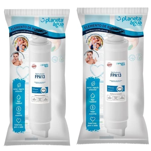 Fácil de instalar, refil girou/trocou Absorve o cloro, retira sabores desagradáveis e reduz substâncias químicas e orgânica Retém barro, areia, ferrugem e outras partículas acima de 5 micras Controla a proliferação de bactérias Bacteriostático Econômico 1 refil = 200 galões de 20 litros de água mineral ou 8000 garrafas pet de 500 ml Alta qualidade e custo baixo