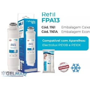 Kit com 2 unidades de refil Este refil é aplicável com os aparelhos Electrolux PE10B e PE10X. As marcas citadas são propriedades de seus respectivos fabricantes e aparecem apenas para demonstrar a compatibilidade deste produto. CARACTERÍSTICAS TÉCNICAS Código: 1082 Vida Útil: 4000 litros Vazão: 60 litros/hora Retenção de Partículas: Classe C 5 a 15 micra Dimensões da Embalagem: 280x66x66 mm Dimensões do Produto: 272x64x64 mm Peso Líquido: 0,341 kg Peso Bruto: 0,372 kg Temperatura de Operação: 1 a 40 C Pressão de Operação: 29 a 392 kPa 3 a 40 mca Código de Barras: 7898614781605 : 90 dias Com Redução de Cloro Livre BENEFÍCIOS DO PRODUTO Fácil de instalar, refil girou/trocou Absorve o cloro, retira sabores desagradáveis e reduz substâncias químicas e orgânica Retém barro, areia, ferrugem e outras partículas acima de 5 micras Controla a proliferação de bactérias Bacteriostático Econômico 1 refil = 200 galões de 20 litros de água mineral ou 8000 garrafas pet de 500 ml Alta qualidade e custo baixo Marca: Não Informado Ean: 7898614146619