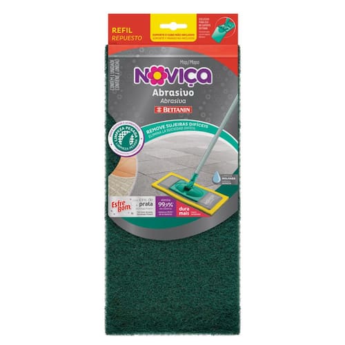 O Noviça mop Abrasivo possui manta com Íons de Prata que removem até as sujeiras mais difíceis.