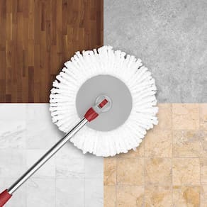 O Mop é o nosso produto de limpeza para todas as horas, com centrífuga que facilita na remoção do excesso de água e lavagem do esfregão. Utilizável em pisos frios, sintéticos e amadeirados. Garanta o Refil Circular feito de Microfibra para seu Mop.