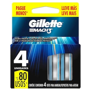 O que é o Gillette Mach 3? A Carga para aparelho de barbear Gillette Mach3 foi desenvolvida para peles mais sensíveis. Isso porque ela conta com uma fita lubrificante para um maior cuidado para a pele, evitando irritações. Sua estrutura oferece 3 lâminas resistentes com aço e que ficam afiadas por mais tempo, além de 10 micro estabilizadores que ajudam a alisar a pele.