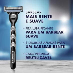 Este modelo da Gillette Mach3 garante até 20 barbas por recarga e uma cabeça móvel que se adapta ao contorno do rosto para um barbear perfeito.