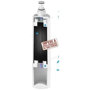 Refil para purificador de água com redução de cloro livre, retenção de partículas classe C (5 a 15 micra), controle de proliferação de bactérias (bacteriostático). Vida útil de 2500 litros ou 6 a 9 meses. Vazão de 50 litros/hora. Composição: Polipropileno, polipropileno meltblown, carvão ativado, borracha de vedação NBR e bateria de lítio.Tipo