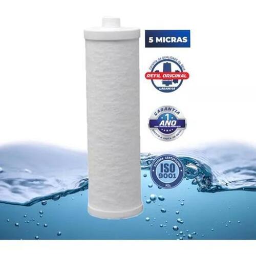 Refil de Polipropileno 93/4 Rosqueável para filtro de água com altura de 9.3/4, diâmetro externo de 2.1/2, filtração de 50 micras e vazão máxima recomendada de 1.000 Litros/Hora.Tipo