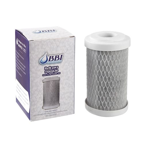 Refil para filtro SHOWER 125, e também para outros filtros de chuveiro que utilizem refis de 5". Alta capacidade de redução de cloro, Fácil instalação, Reduz gostos e odores presentes na água. Retém sedimentos e partículas sólidas, Proteção ao couro cabeludo: proporciona um cabelo mais macio e sedoso inibindo os dados causados pelo cloro, - Proteção a pele: deixa mais macia, diminui o risco de alergias, coceiras e irritações que a presença do cloro na água pode causar, - Proteção aos olhos: inibe irritações nos olhos de pessoas sensíveis a presença de cloro na água. - Melhora o rendimento de shampoos, - Sabonetes e shampoos com espuma e perfume mais evidentes. Pressão de operação: Máxima 40mca/Mínima 2 mca Temperatura de operação: Máxima 50 graus, mínima 1 grau. Vazão nominal: 180 litros/hora Tamanho do elemento: 5" de altura, 2,5" de diâmetro externo Ean: 7898962510155