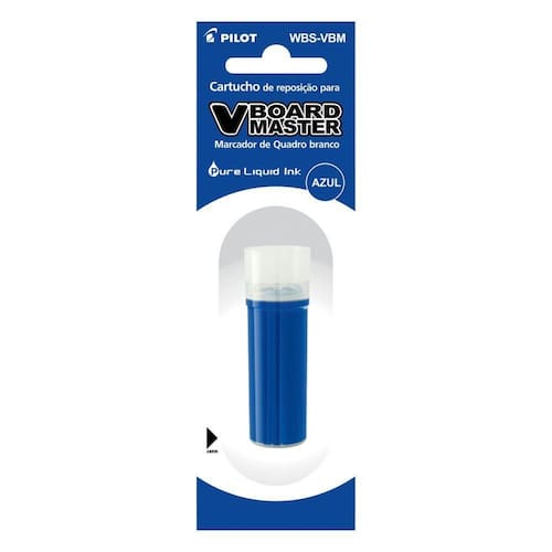 Refil Pilot WBS-VBM, especialmente desenvolvido para o Marcador de Quadro Branco Pilot V Board Master. Conta com tinta especial que dissolve em pó e não mancha as mãos nem o quadro branco. Sua tecnologia de recarga em cartucho, garante uma troca limpa e sem manchas, pois não é necessário o contato com a tinta.