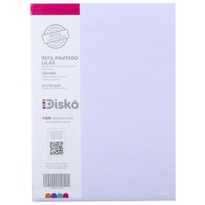 -50 folhas -folhas pautadas com linhas brancas -marca: Diskô -cor: Lilás -formato: Grande -dimensões: 290mm x 210mm LxC -referência: RF21C069