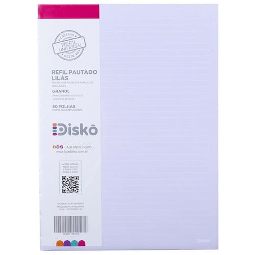 Traga a organização e a beleza da cor lilás para suas anotações Garanta já a reposição do seu Caderno de Discos com o Refil Disko Lilás Marca: Não Informado