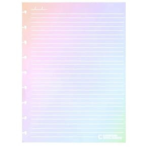 Em um degradê de cores, o refil rainbow é a mistura da beleza das cores do arco-íris e os sentimentos bons que cada uma delas carregam em si, com a funcionalidade das linhas brancas que suportam suas anotações, lettering, desenhos ou rabiscos sem as distrações das linhas escuras convencionais.