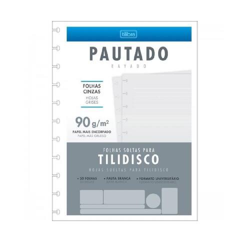 O Refil para Tilidisco Universitário Folhas Cinzas Pauta Branca 50 Folhas tem gramatura de 90 g/m para facilitar o encaixe dos discos e oferecer mais possibilidades de escrita com diversos tipos de canetas. O produto possui furação para 11 discos. Detalhes Formato: 200mm x 275mm Gramatura: 90 g/m Número de folhas: 50 folhas Marca: Não Informado