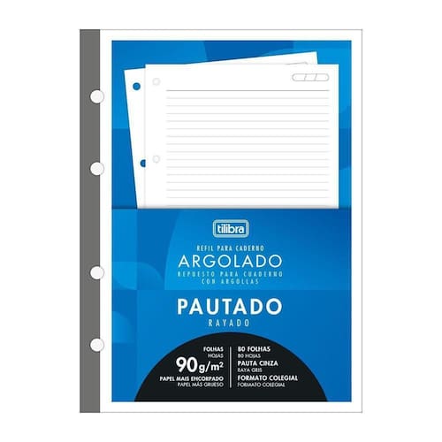 O Refil Tiliflex para Caderno Argolado Colegial 80 Folhas 90 Gramas possui folhas pautadas coladas. Ideal para o dia a dia na escola ou na faculdade. Detalhes: - Capa: flexível - Folhas: pautadas - Produto certificado: FSC - Formato: 177mm x 240mm - Gramatura: 90 g/m - Número de folhas: 80 folhas
