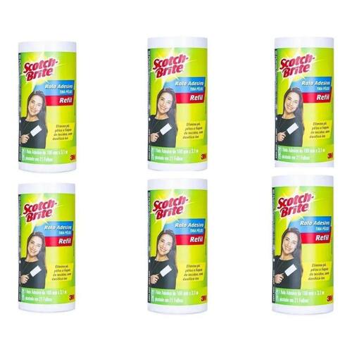 São 6 Unidades, Refil Tira Pelo Rolo Ades. Scotch Brite 100mm X 3,1m.Refil com 21 Folhas.O Refil para Rolo Adesivo Tira Pelos 100m x 3,1m Scotch elimina pó, pelos e fiapos de tecidos, sem danifica-los.Refil fácil de usar com troca simples e rápidaSolução econômica e sustentávelDeixa suas roupas e tecidos livres de pó, pelos, cabelos e fiaposO único da categoria com o adesivo Scotch-BritePrático, eficiente e eleganteRoupa nova todos os dias O Refil Rolo Adesivo Scotch-Brite, além de proporcionar a melhor limpeza em todos os usos, é um produto prático, eficiente e elegante para o consumidor. Possui alta performance e troca fácil e rápida.