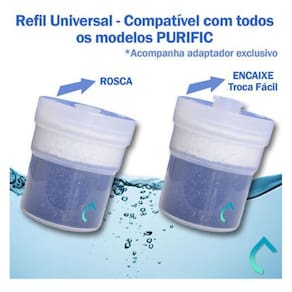 Filtro compatível com purificadores PURIFIC, remove cloro, elimina sabores, retém partículas, eleva o pH.Tipo
