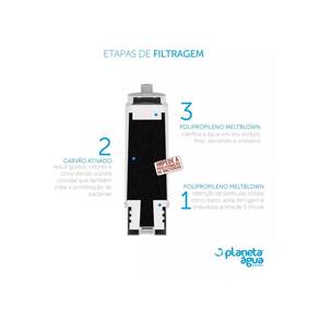 Refil compatível com diversos modelos de filtros, reduz cloro, retém impurezas e inibe bactérias.Tipo