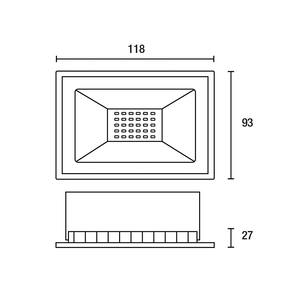 Especificações gerais do produto Frequência: 50/60 HzDimensões AxLxP (mm): 27x93x118Cor: PretoMaterial: Alumínio e VidroGarantia: 2 anos junto ao fabricanteVoltagem: BivoltPotência: 30WGrau de Proteção: IP 66Ângulo de Abertura: 110ºEficiência Luminosa: 92 lm/WFluxo Luminoso: 2760 lúmensVida Útil: 30.000 horasDistância do Facho de Luz: 10 metrosFator de Potência: maior ou igual 0,5IRC (Índice de Reprodução de Cor): maior ou igual 80Modelo/Tecnologia: LED Embutido O que acompanha o produto1 Refletor