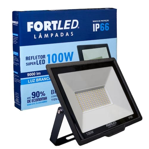 O refletor se destaca por ser uma luminária de chão e que exige uma potência bem maior em relação à usada dentro de casa, afinal, sua função é iluminar o exterior, desde a garagem até o jardim, por exemplo.
