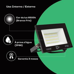 Refletor Holofote 100w Led Branco Frio 6500k Bivolt Nosso Refletor Holofote 100w Led Branco Frio Bivolt tem índice de proteção IP66, ou seja, é a prova dágua e livre de intempéries, tornando-o um produto de maior vida útil e 100% seguro para uso externo. Sua avançada tecnologia SMD confere a este produto Chip LED de última geração com fluxo luminoso de qualidade, despontando-o como o melhor custo benefício do mercado. Este refletor é vedado, produzido com alumínio e vidro temperado. Cabe ainda ressaltar a economia de mais de 80% na conta de luz por ser um produto LED.