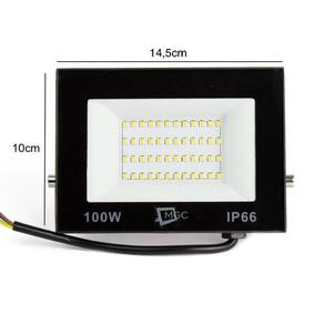 Informações Técnicas: - Modelo: Refletor Holofote 100w Branco Frio 6500k - Marca: MGC - Potência: 100W - Índice de Proteção: IP66 - Voltagem: Bivolt Automático 100v - 250v - Temperatura de Cor: 6500K Branco Frio - Luminosidade: 8.500 lm - Vida útil: 25.000 hrs - Frequência Nominal: 50/60 Hz - Fator de Potência: 0,5 - Ângulo de abertura: 120 - Dimensões: 14cm x 2,5cm x 10cm - Cor: Preto Pintura eletrostática para maior durabilidade, resistente a intempéries - Garantia: 90 dias