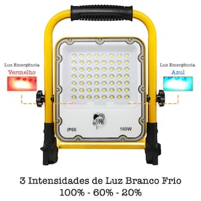 #Características 1. Potência: 200W para uma iluminação brilhante e intensa. 2. Bateria Recarregável: 10.000mAh para maior autonomia. 3. Duração da Bateria: Até 24 horas, ideal para uso prolongado. 4. Classificação IP66: Resistente à água e ao tempo, perfeito para uso externo. 5. Portabilidade: Fácil de transportar, permitindo que você ilumine qualquer lugar com facilidade. 6. Tecnologia LED: Eficiente em energia, economizando custos de energia.