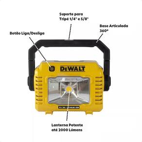 O Refletor de Iluminação Led 12/20VMAX e FLEXVOLT 60V Dewalt DCL077B é um produto ideal para qualquer área de trabalho. Com base articulada e oferecendo 360 graus de movimento, é um dos mais versáteis da categoria. Além disso, possui duas montagens de tripé, proporcionando ainda mais opções de uso.