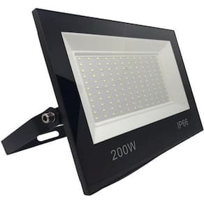 - potência: 200w - temperatura de cor: branco frio 6500k - modelo: slim - material: alumínio e vidro - carcaça: alumínio cor preta - vida útil estimada de até 30. 000 horas - luminosidade: 16000 lúmens - voltagem: ac100-277v bivolt - ângulo abertura: 120 - certificação: ce - proteção: ip66 - sendor de movimento: não - dimensões: 24 x 19 x 3. 1 cm