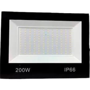 - potência: 200w - temperatura de cor: branco frio 6500k - modelo: slim - material: alumínio e vidro - carcaça: alumínio cor preta - vida útil estimada de até 30. 000 horas - luminosidade: 16000 lúmens - voltagem: ac100-277v bivolt - ângulo abertura: 120 - certificação: ce - proteção: ip66 - sendor de movimento: não - dimensões: 24 x 19 x 3. 1 cm