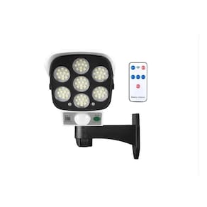 Refletor LED 77 simulando uma câmera de segurança e luz solar 2 em 1, design elegante de baixo perfil ativado por movimento. 3 modos de iluminação opcionais. Modo 1: (A luz é acesa quando uma pessoa passa e desliga 20 a 30 segundos após a pessoa sair) Modo 2: (Acende quando as pessoas passam, a luz cai novamente quando alguém passa) Modo 3: Modo de pouca luz (a lâmpada está sempre no estado de pouca luz, por exemplo, independentemente de haver pessoas ou não) Sensor de movimento PIR embutido, a luz será ativada automaticamente quando um movimento for detectado a uma distância de 10 pés até 20 pés, alcance de 120 graus à noite. Ajustável e fácil de instalar, à prova d'água, perfeito para uso externo.