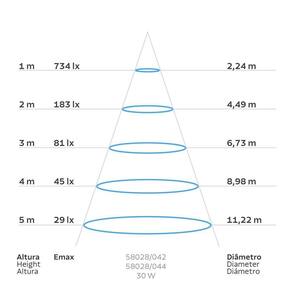 Potência: 30W (T30): Correspondente a potência máxima do refletorCor da Luz: BrancaAplicação: Jardins, festas e decoraçõesGrau de Proteção: IP65Diferenciais: Válvula de alívio para evitar condensação interna