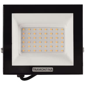 Para iluminar com qualidade e eficiência ambientes externos como estacionamentos, quadras de esportes e jardins, o Refletor LED Tramontina 3400 lm 50 W 3000 K Luz Amarela é a escolha perfeita. Ele é desenvolvido em alumínio e conta com difusor em vidro que otimiza a dissipação do calor e aumenta a sua vida útil. Seu ângulo de abertura é de 120 graus e proporciona uma distribuição da luz de maneira uniforme, além de apresentar índice de reprodução de cores superior a 80. Possui grau de proteção IP65 e válvula de alívio que evita a condensação de umidade no interior do produto, o que garante sua integridade e durabilidade. Ele pode ser instalado tanto no chão, quanto na parede e ainda possui um driver incorporado eficaz que proporciona um baixo consumo de energia. Um refletor com a qualidade Tramontina, que você já conhece e confia!