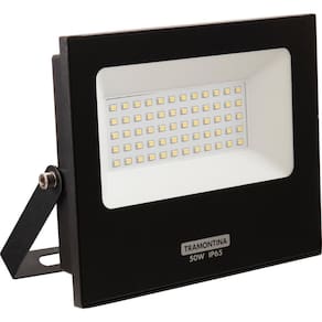 Para iluminar com qualidade e eficiência ambientes externos como estacionamentos, quadras de esportes e jardins, o Refletor LED Tramontina 4500 lm 50 W 3000 K Luz Amarela é a escolha perfeita. Ele é desenvolvido em alumínio e conta com difusor em vidro que otimiza a dissipação do calor e aumenta a sua vida útil. Seu ângulo de abertura é de 120 graus e proporciona uma distribuição da luz de maneira uniforme, além de apresentar índice de reprodução de cores superior a 80. Possui grau de proteção IP65 e válvula de alívio que evita a condensação de umidade no interior do produto, o que garante sua integridade e durabilidade. Ele pode ser instalado tanto no chão, quanto na parede e ainda possui um driver incorporado eficaz que proporciona um baixo consumo de energia. Um refletor com a qualidade Tramontina, que você já conhece e confia!