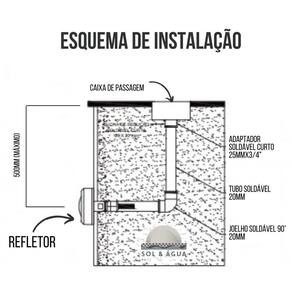 Este refletor funciona com central de comando a qual é vendida separadamente. Este refletor funciona com fonte de 12v a qual é vendida separadamente e não deve ser ligado na rede 110v ou 220v. Adaptadores para tubo rosca 1.1/2 ou para tubo liso 50mm são vendidos separadamente. Ean: 7898719763049
