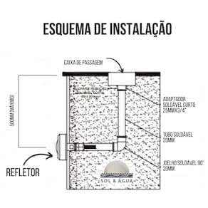 Este refletor funciona com central de comando a qual é vendida separadamente. Este refletor funciona com fonte de 12v a qual é vendida separadamente e não deve ser ligado na rede 110v ou 220v. Adaptadores para tubo rosca 1.1/2 ou para tubo liso 50mm são vendidos separadamente. Marca: Não Informado