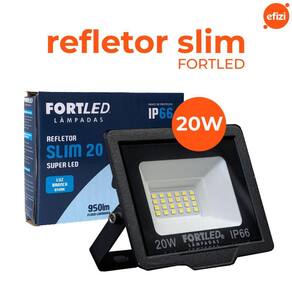 O Refletor SLIM 20W 6500K Fortled é uma excelente opção para iluminar o exterior da sua casa, desde garagem até jardim! Possuindo o selo de proteção IP66, o Refletor Fortled é totalmente protegido contra a poeira e a prova de água.