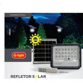 - 1 REFLETOR SOLAR LED 200W 6500K 2800lm - G-LIGHT 1 PAINEL SOLAR 1 ALÇA DE FIXAÇÃO P/ REFLETOR + 1 ALÇA DE FIXAÇÃO P/ PAINEL SOLAR 1 CONTROLE REMOTO COM BATERIAS