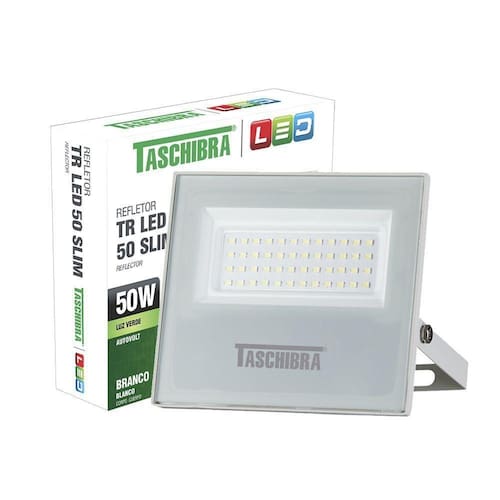 Refletor Taschibra Led TR Slim 50W Luz Verde Branco Bivolt