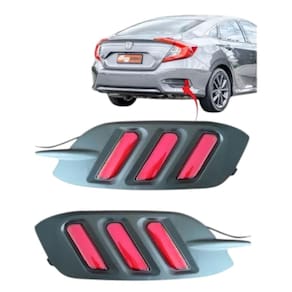 • Par lanterna traseira parachoque Honda civic G10; • Produto: Par lanterna traseira parachoque Honda civic G10; DETALHES: -2 Funções - Daylight DRL Led para refletor traseiro com Led - Funciona com a lanterna e Luz de Freio