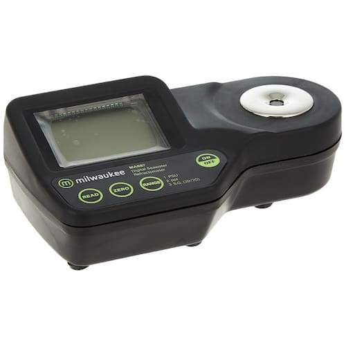 Milwaukee Refratômetro digital de salinidade MA887 com compensação automática de temperatura, LED amarelo, 0 a 50 PSU, precisão de +/-2 PSU, resolução de 1 PSU (a cor pode variar) - Testado em laboratório - Tela de LED amarela