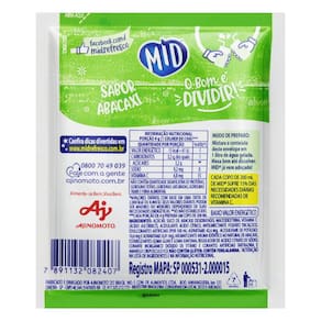 Prático e saboroso, o Refresco Em Pó MID Sabor Abacaxi é uma bebida leve, deliciosa, refrescante e fácil de preparar, já vem adoçado e basta adicionar o sachê em 1 litro de água e está pronto! MID possui diversos sabores para você escolher, todos com baixo teor calórico, ideal para quem quer aproveitar, sem se preocupar com a dieta.