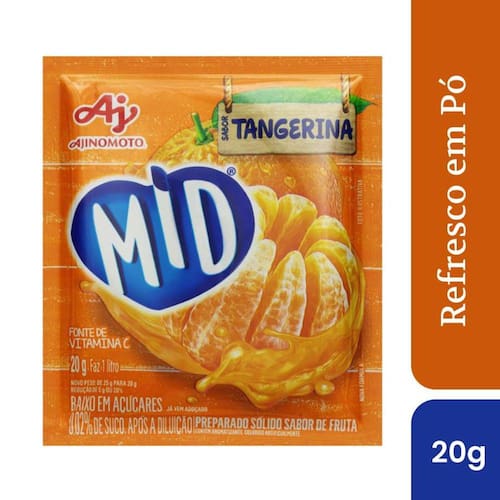 Prático e saboroso, o Refresco Em Pó MID Sabor Tangerina é uma bebida leve, deliciosa, refrescante e fácil de preparar, já vem adoçado e basta adicionar o sachê em 1 litro de água e está pronto! MID possui diversos sabores para você escolher, todos com baixo teor calórico, ideal para quem quer aproveitar, sem se preocupar com a dieta.
