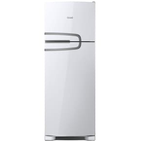 Geladeira Consul Frost Free Duplex 340 litros Branca com Prateleiras Altura Flex Tipo de Degelo: Frost Free Cor Principal -visao Frontal-: Branco Capacidade Total Liquida -l-:340 Metodo de Preparo: 1 Numero de Portas: 2 Painel de Controle: Interno Posicao do Freezer: Em Cima Voltagem: 127 V, 220 V Principais Diferenciais: Altura Flex: Com o exclusivo sistema de regulagem, as prateleiras podem ser ajustadas em ate 8 niveis de altura para acomodar itens de diversos tamanhos sem precisar tira-los da geladeira. Funcao Turbo: Resfrie sua geladeira muito mais rapido. Mais facilidade para quando ela esta cheia e para ocasioes especiais. Frost Free: Sabe quando chega a hora de limpar a geladeira e voce precisa esperar ela descongelar inteira? Entao, com uma geladeira Frost Free nada disso acontece! Isso por que ela possui uma tecnologia avancada que faz com que nunca se forme gelo nas paredes do congelador. Ou seja: voce nao precisa descongelar nunca. Especificacoes de Controle e Seguranca: Painel de Controle: Interno Tipo de Controle do Painel: Eletronico Tipo de Display: LED Controle de Temperatura no Refrigerador: Sim Numero de Niveis de Temperatura do Refrigerador: 5 Controle de Temperatura no Freezer: Sim Numero de Niveis de Temperatura do Freezer: 3