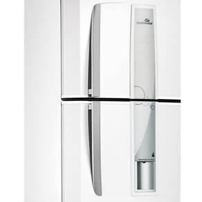 O dispenser na porta do refrigerador garante enorme praticidade para qualquer um. Com ele, é possível retirar água gelada de maneira rápida e fácil. Para isso, basta pressionar o copo contra o flap.