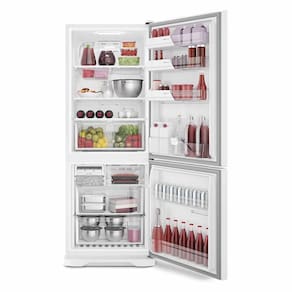 Refrigerador Electrolux Frost Free Bottom Freezer 454L Branco 220V DB53Sofisticação e elegância, a Electrolux oferece o novo Refrigerador Frost Free Bottom Freezer, projetado com um conceito moderno, cativa pelo seu modelo inovador e supera todas as expectativas de quem não abre mão de um produto funcional e de alta categoria. O refrigerador possui diversas possibilidades que se adequam as necessidades diárias e o seu incrível Painel Blue Touch deixa tudo ainda mais moderno. Desenhado para facilitar o dia a dia e deixar os alimentos sempre na palma da mão, a geladeira DB53 permite otimizar a organização de seu interior, aproveitando o espaço e dando visibilidade a todo o conteúdo do refrigerador. Com prateleiras deslizantes, prateleira retrátil e o Fast Adapt permitem que seja organizado o espaço interno conforme às suas necessidades ou para ocasiões especiais.O refrigerador conta com a função Drink Express, gelando as bebidas rapidamente ao acionar um botão no painel externo. Ativando o Modo Festa, a temperatura interna da geladeira se mantem por até seis horas, mesmo com o abrir e fechar da porta durante os eventos especiais, as comemorações e os brindes não precisam atrasar por conta de bebidas que não estejam na temperatura ideal.Com a geladeira na parte superior, você não precisa abaixar para encontrar verduras e legumes na gaveta, perfeito para quem gosta de consumir alimentos frescos e prefere que eles fiquem a vista. Seu design moderno e funcional proporciona o melhor para o seu ambiente, conte com a Electrolux e tenha eletrodomésticos de alta qualidade, conte com o Refrigerador DB53 e dê um upgrade na sua cozinha.Especificações Técnicas:- Marca: Electrolux- Modelo: DB53- Voltagem: 220V- Cor: Branco- Tipo: Inverse (Freezer na parte de baixo)- Tecnologia Inverter: Não- Volume útil (L): 454L - Alarme de Porta Aberta: Sim- Cesta Porta Ovos: Sim- Compartimento Extra Frio: Sim- Degelo Automático: Sim- Iluminação Interna: Sim- Pés Niveladores: Sim- Prateleiras de Vidro Temperado: Sim- Prateleiras na Porta: Sim- Prateleiras Reguláveis: Sim- Prateleiras Removiveis: Sim- Recipiente para Guardar Gelo: Sim- Rodízios: Sim- Separador de Garrafas: Sim- Acabamento Frontal: Branco- Classificação Energética: A- Frequência: 60 Hz- Dimensões (AxLxP): 189.5 x 69.2 x 80.2 cm- Peso (Kg): 84,8 kg- Garantia: 12 meses