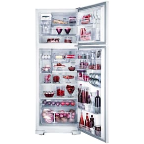 E as vantagens que a Electrolux te oferece não param por aí! Você conta com Duplo Gavetão para colocar frutas, verduras e legumes em um local espaçoso, conta ainda com Trava-Garrafas aproveitável, o papel dele é impedir o tombamento das garrafas colocadas na porta e organizar pequenas embalagens como maionese, molhos entre outros.