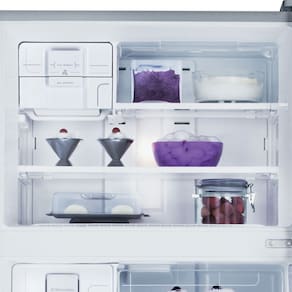 O Drink Express gela bebidas rapidamente no Espaço Express, é removível para servi-las à mesa. Vem com prateleira funda na porta para garrafas de até 3,3 litros, com trava garrafas aproveitável, evitando assim o tombamento. O Ice Stock armazena grande quantidade de cubos de gelo ou até duas garrafas.