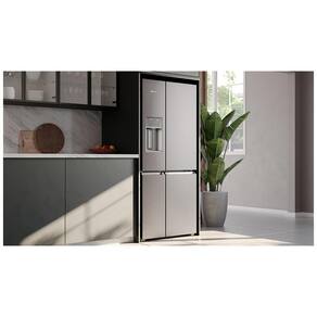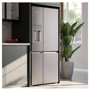 Com a Geladeira Electrolux Home Pro IQ8IS você deixa os seus alimentos mais frescos na temperatura ideal, para não jogar nada fora. Conheça já! A Geladeira Electrolux Home Pro com FlexiSpace IQ8IS tem quatro portas e tecnologias especiais para preservar seus alimentos por mais tempo e evitar desperdícios. O compartimento FlexiSpace é um espaço inteligente com 5 diferentes opções de temperatura, para preservar alimentos e bebidas da forma ideal. As temperaturas variam entre freezer (-23C), carnes e peixes (-2C), bebidas frias (0C), alimentos frescos (3C) e vinhos (7C).? Ou seja, você pode ampliar o espaço da sua geladeira ou o espaço do seu freezer, de acordo com o que quiser armazenar. Ativando a temperatura Carnes e Peixes (-2C) do compartimento FlexiSpace, você mantém 97%1 das proteínas das carnes e preserva por mais tempo a maciez e o sabor originais. Já a tecnologia exclusiva Electrolux AutoSense controla a temperatura automaticamente usando Inteligência Artificial e prolonga a vida dos alimentos por até 30%2 mais tempo, evitando desperdícios. Essa função reconhece sua rotina diária e seus hábitos de consumo. Assim, é possível identificar os momentos de maior e menor uso da geladeira, mantendo a temperatura ou deixando-a mais fria. A gaveta TasteLock possui vedação especial e controle automático de umidade, que mantém frutas e vegetais mais frescos por até 14 dias3. A Tecnologia Inverter mantém a temperatura da geladeira mais estável, com redução do consumo de energia e economia de até 20%4, além de garantir condições ideais para preservar os alimentos. O TasteGuard elimina até 9x5 mais rápido os maus odores causados por bactérias, garantindo que sua geladeira permaneça sempre higiênica. Já o filtro de ar ExtraFresh absorve até 90%6 do gás etileno, para desacelerar o amadurecimento de frutas e vegetais e deixá-los mais frescos por mais tempo. Com o Dispenser de água e gelo na porta da geladeira, seu dia a dia fica ainda mais prático. Você pode obter gelo em cubos, filtrados e prontos para o consumo, a qualquer hora. Além de todas as funcionalidades da Geladeira Home Pro com FlexiSpace IQ8IS, a prateleira retrátil e FastAdapt possibilitam diferentes configurações internas para armazenar alimentos de diversos tamanhos e formatos. Características Tipo: French Door Quantidade de Portas: 04 Frost Free Painel Eletrônico Prateleiras: 04 prateleiras reversíveis, retráteis e removíveis Alarme de Portas Abertas Dispenser de Água na Porta: Externo Dispenser de Gelo na Porta: Externo Degelo Automático Controle Automático de Temperatura Gavetas: 02 Controle de Temperatura para Bebidas Conexão de Ponto de Água Pés Niveladores Especificações Técnicas Modelo: IQ8IS Cor: Platinum Capacidade Total: 541 Litros Capacidade de Armazenamento do Freezer: 191 Litros Capacidade de Armazenamento do Refrigerador: 350 Litros Consumo de Energia: 64,9 kwh/mês Voltagem: 110V/220V (não é Bivolt) EAN: 7909569403983 (110V) / 7909569403990 (220V) Garantia: 12 meses Dimensões e Peso Dimensões do produto com puxador (AxLxP): 1900x835x760 mm Dimensões do produto com embalagem (AxLxP): 1922x870x811 mm Peso do produto sem embalagem: 115 Kg Peso do produto com embalagem: 117 Kg Itens Inclusos 01 Refrigerador Manual de Intruções Serviço de Instalação e Orientação de Uso Para sua comodidade, a Fast Shop dispõe do serviço de Instalação* e Orientação de Uso, com equipe especializada e autorizada pelo fabricante que poderá realizar a medição de todos os acessos, retirando as portas do produto caso necessário. Esse serviço pode ser adquirido em contato com nosso canal Blá pelo WhatsApp no número (11) 3232-2949 ou em uma de nossas lojas. Consulte os valores e regiões atendidas.