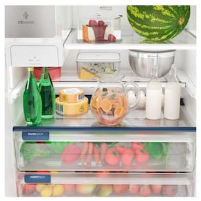 A Geladeira Electrolux Pro Series com FlexiSpace IQ8IB tem quatro portas e tecnologias especiais para preservar seus alimentos por mais tempo e evitar desperdícios. Além disso, seu design moderno e elegante na cor preta entrega sofisticação para sua cozinha, com acabamento externo em vidro preto e detalhes em light gold. O compartimento FlexiSpace é um espaço inteligente com 5 diferentes opções de temperatura, para preservar alimentos e bebidas da forma ideal. As temperaturas variam entre freezer (-23C), carnes e peixes (-2C), bebidas frias (0C), alimentos frescos (3C) e vinhos (7C). Ou seja, você pode ampliar o espaço da sua geladeira ou o espaço do seu freezer, de acordo com o que quiser armazenar. Ativando a temperatura Carnes e Peixes (-2C) do compartimento FlexiSpace, você mantém 97%1 das proteínas das carnes e preserva por mais tempo a maciez e o sabor originais. Já a tecnologia exclusiva Electrolux AutoSense controla a temperatura automaticamente usando Inteligência Artificial e prolonga a vida dos alimentos por até 30%2 mais tempo, evitando desperdícios. Essa função reconhece sua rotina diária e seus hábitos de consumo. Assim, é possível identificar os momentos de maior e menor uso da geladeira, mantendo a temperatura ou deixando-a mais fria. A gaveta TasteLock possui vedação especial e controle automático de umidade, que mantém frutas e vegetais mais frescos por até 14 dias3. A Tecnologia Inverter mantém a temperatura da geladeira mais estável, com redução do consumo de energia e economia de até 20%4, além de garantir condições ideais para preservar os alimentos. O TasteGuard elimina até 9x5 mais rápido os maus odores causados por bactérias, garantindo que sua geladeira permaneça sempre higiênica. Já o filtro de ar ExtraFresh absorve até 90%6 do gás etileno, para desacelerar o amadurecimento de frutas e vegetais e deixá-los mais frescos por mais tempo. Com o Dispenser de água e gelo na porta da geladeira, seu dia a dia fica ainda mais prático. Você pode obter gelo em cubos, filtrados e prontos para o consumo, a qualquer hora. Além de todas as funcionalidades da Geladeira Pro Series com FlexiSpace IQ8IB, a prateleira retrátil e FastAdapt possibilitam diferentes configurações internas para armazenar alimentos de diversos tamanhos e formatos. Características Tipo: French Door Quantidade de Portas: 04 Frost Free Painel Eletrônico Prateleiras: 03 Prateleiras (Refrigerador Gabinete) / 06 Prateleiras (Porta) Alarme de Portas Abertas Dispenser de Água na Porta: Externo Dispenser de Gelo na Porta: Externo Degelo Automático Controle Automático de Temperatura Gavetas: 02 gavetas no refrigerador e 02 gavetas no freezer Conexão de Ponto de Água Pés Niveladores Especificações Técnicas Modelo: IQ8IB Cor: Black Capacidade Total: 541 Litros Capacidade de Armazenamento do Freezer: 191 Litros Capacidade de Armazenamento do Refrigerador: 350 Litros Consumo de Energia: 64,9 kwh/mês Voltagem: 110V/220V (não é Bivolt) EAN: 7909569404003 (110V) / 7909569404010 (220V) Garantia: 12 meses Dimensões e Peso Dimensões do produto com puxador (AxLxP): 1900x835x760 mm Dimensões do produto com embalagem (AxLxP): 1922x870x811 mm Peso do produto sem embalagem: 115 Kg Peso do produto com embalagem: 117 Kg Itens Inclusos 01 Refrigerador Manual de Intruções Serviço de Instalação e Orientação de Uso Para sua comodidade, a Fast Shop dispõe do serviço de Instalação* e Orientação de Uso, com equipe especializada e autorizada pelo fabricante que poderá realizar a medição de todos os acessos, retirando as portas do produto caso necessário. Esse serviço pode ser adquirido em contato com nosso canal Blá pelo WhatsApp no número (11) 3232-2949 ou em uma de nossas lojas. Consulte os valores e regiões atendidas.
